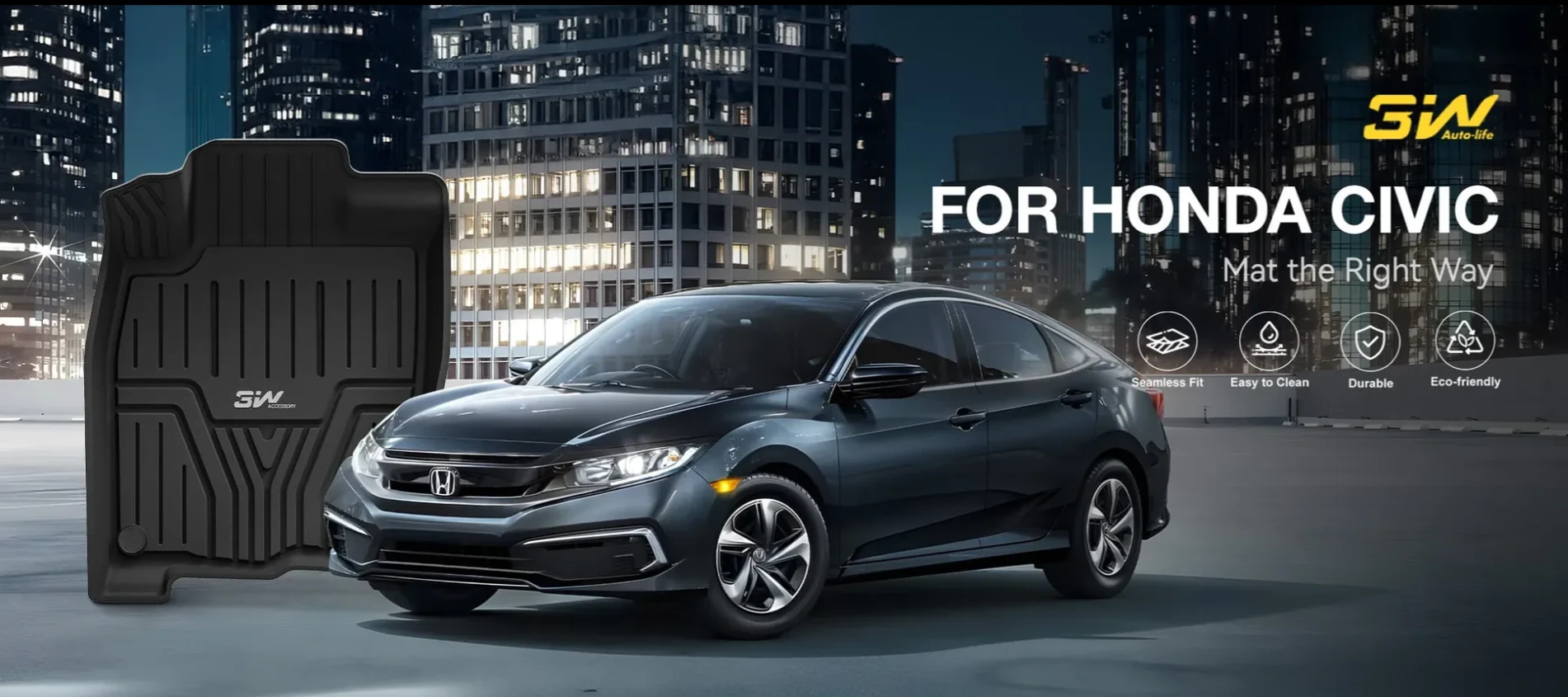 3W Honda Civic 2016-2021 Coupe/Sedan/Type R/Hatchback Custom Floor Mats TPE Material & All-Weather Protection